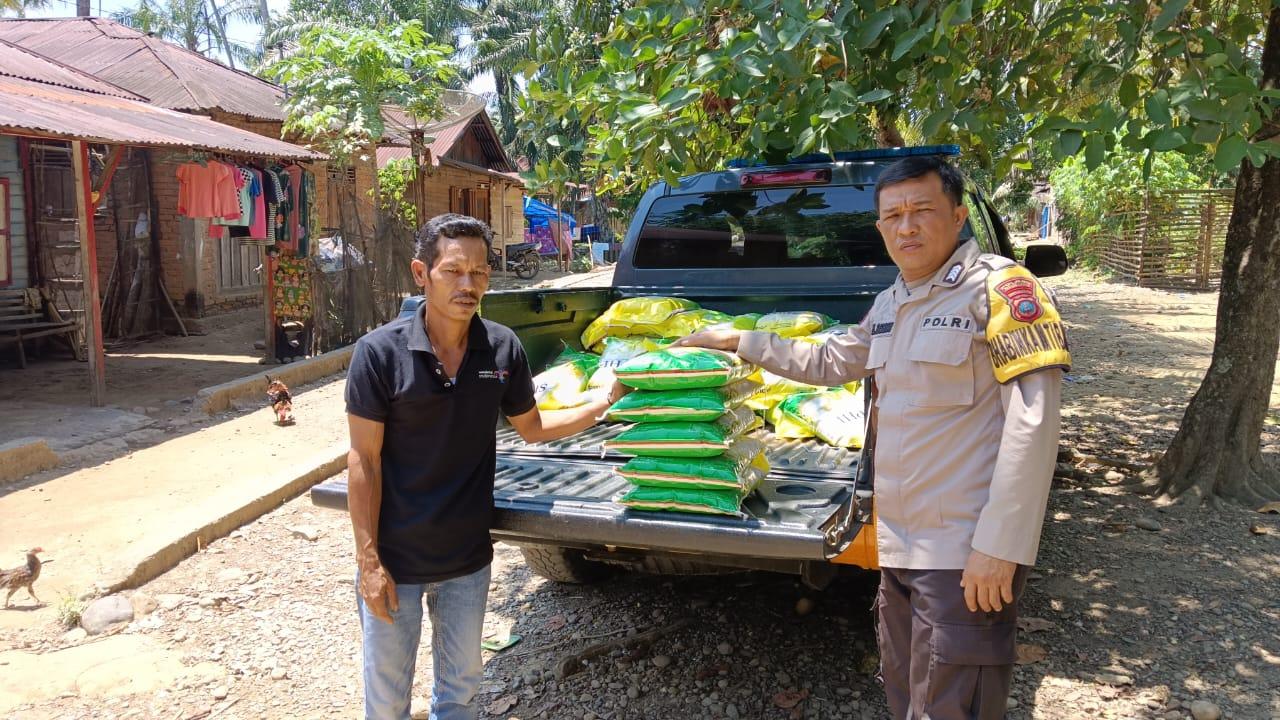 Ringankan Beban Warga, Bhabinkamtibmas Polsek Barumun Salurkan Beras SPHP di Palas