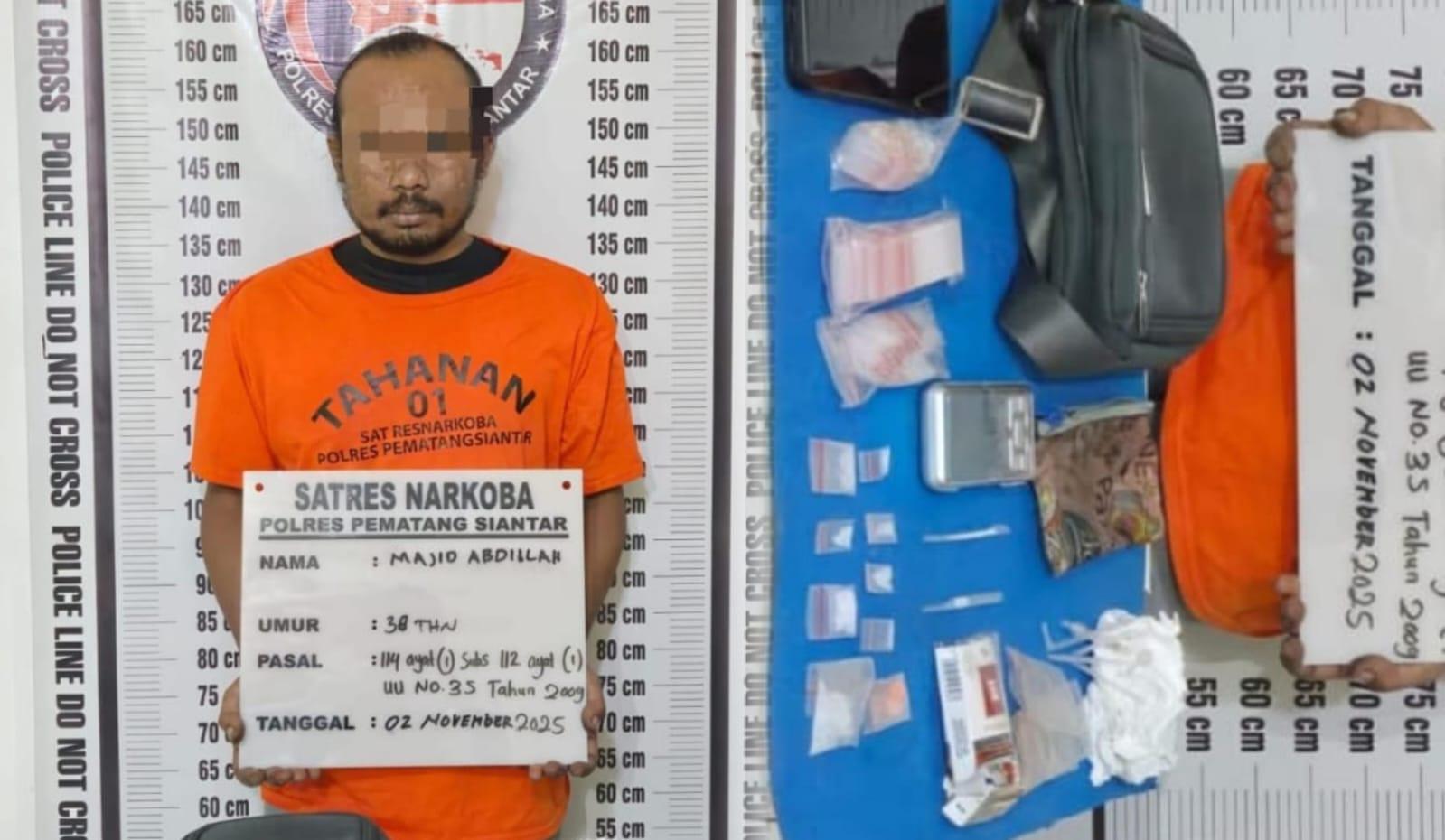 Seorang pria asal Kabupaten Simalungun berinisial MA (38) ditangkap dengan barang bukti sabu seberat 6,30 gram dan sejumlah pil ekstasi.