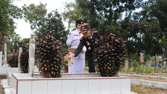 Kapolres Pematangsiantar AKBP Sah Udur T.M. Sitinjak, S.H., S.I.K., M.H. menabur bunga di Taman Makam Pahlawan