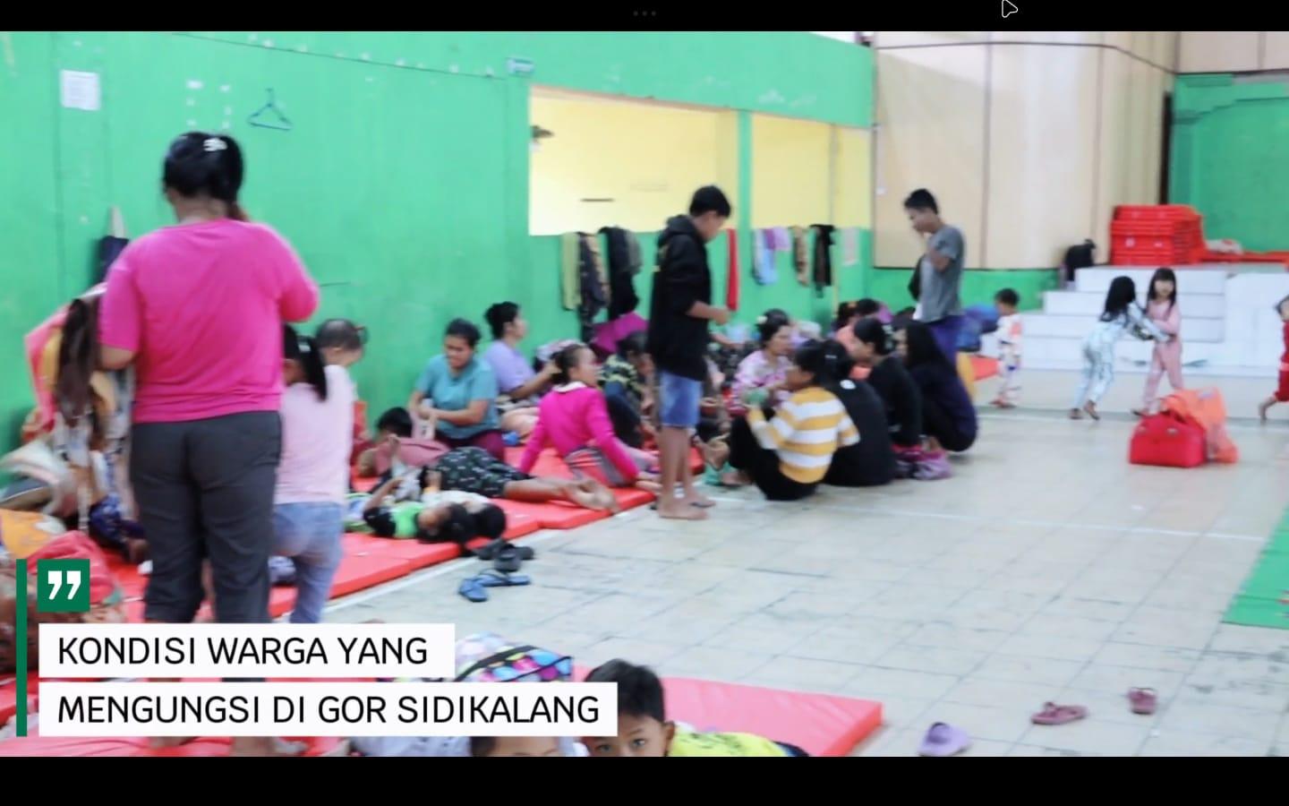 Sejumlah warga Parbuluan VI—anak-anak, ibu-ibu, hingga para lansia—berdesakan di GOR Sidikalang, membawa tikar