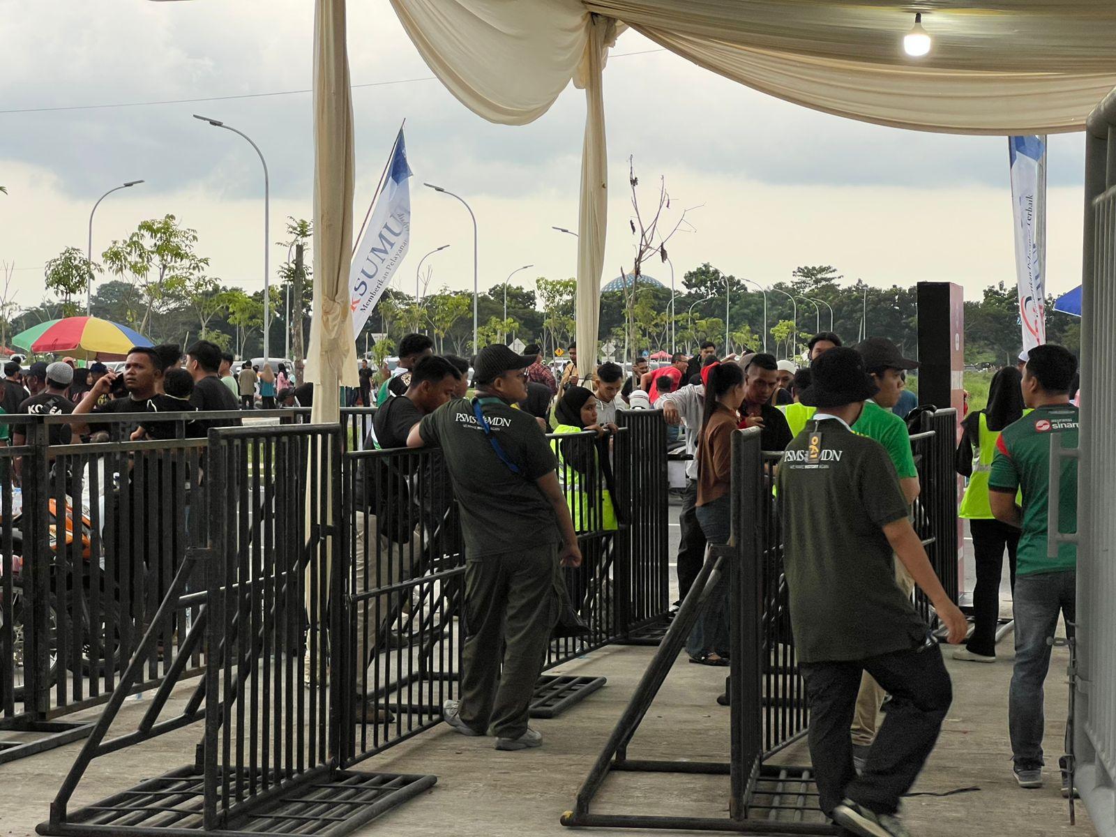 Satu persatu penonton juga sudah mulai menukarkan tiket mereka masing-masing untuk masuk ke dalam Stadion Utama Sumatra Utara.