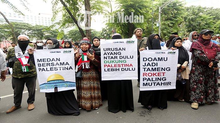 Berita Foto: 'Urusan Ayang Ntar Dulu, Dukung Palestina Lebih Dulu', Poster Lucu Massa Aksi di Medan