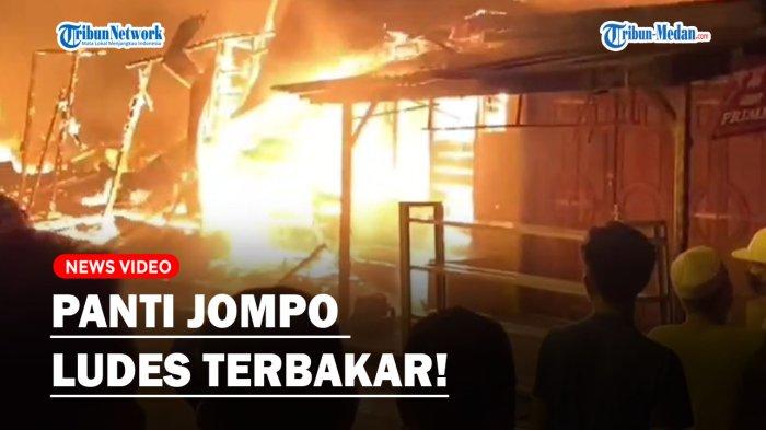 Kebakaran terjadi di Kampung Babussalam, Desa Besilam, lima rumah dan sembilan pintu rumah panti jompo ludes terbakar.