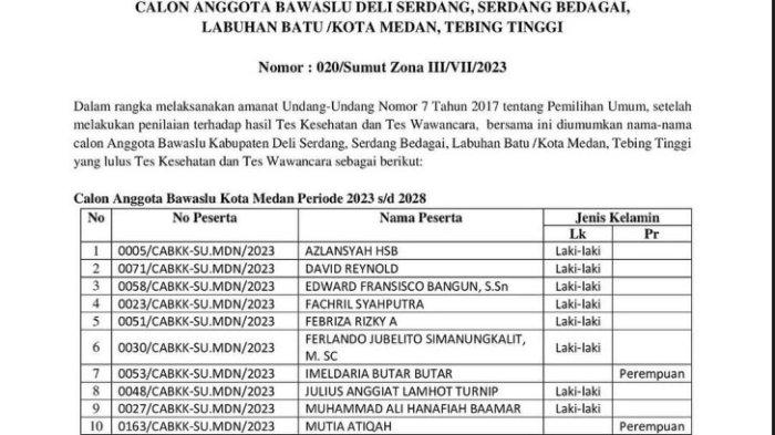 Daftar 10 Nama Calon Anggota Bawaslu Lulus Seleksi Kesehatan dan Wawancara, Ada 2 Perempuan