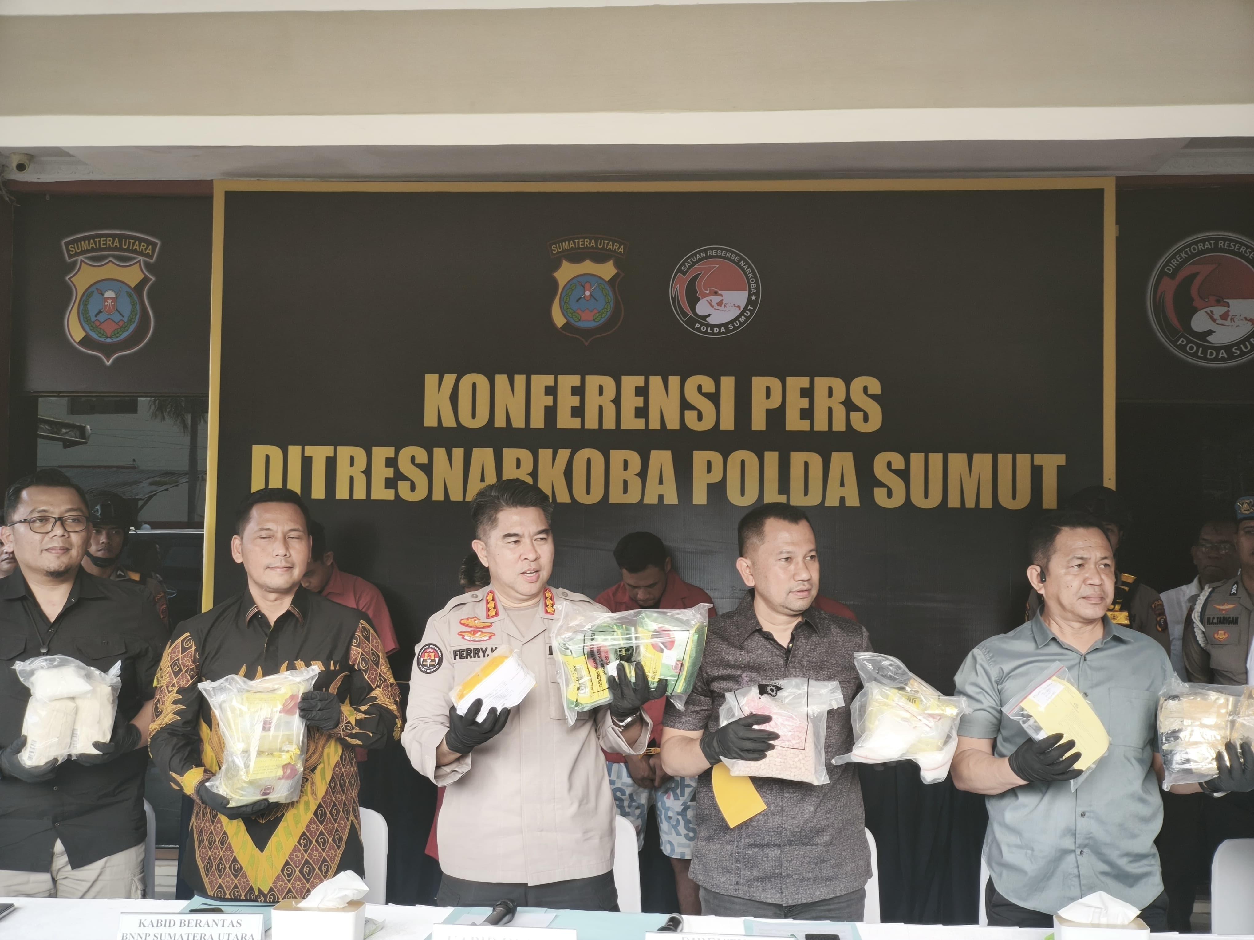 Direktorat Reserse Narkoba Polda Sumatera Utara membongkar jaringan peredaran sabu antarprovinsi dan menyita 10 kilogram