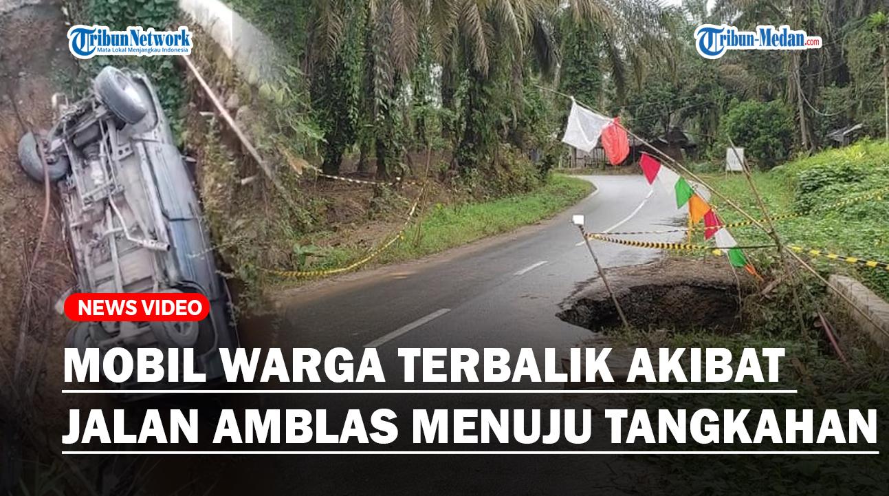 Jalan Amblas Menuju Wisata Tangkahan Akibatnya Mobil Milik Warga Terbalik, Sopir Alami Luka-Luka