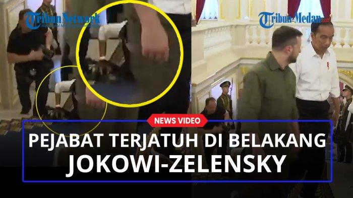 Pejabat Terjatuh Persis di Belakang Jokowi-Zelensky saat Naiki Tangga Istana Mariyinsky