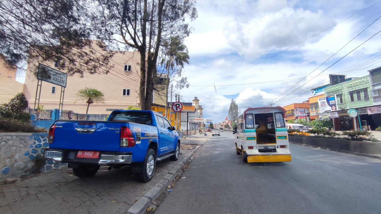 Terpantau, mobil tersebut terparkir di trotoar di Jalan Jamin Ginting, tepatnya berada di depan Kantor PDAM Tirta Malem Kabanjahe.