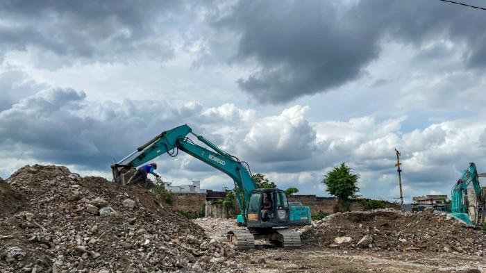 Para pedagang akan menempati area Gedung IV Pasar Horas yang saat ini sedang disterilkan dari material bangunan.