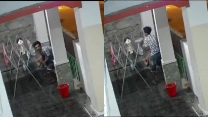 Seorang pria terekam CCTV mencuri pakaian dalam wanita yang sedang dijemur.