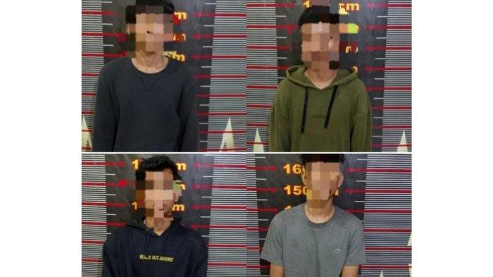 Empat Pria Pelaku Tindak Pidana Pencurian Dengan Kekerasan berinisial MR (16) warga Dsn I Banjaran Desa Kwala Begumit Kecamatan Binjai, MI Alias Har