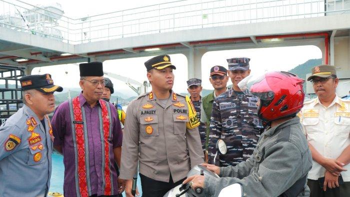 Kapolres Samosir bersama Bupati Samosir dan unsur Forkopimda lainnya melakukan pengecekan ke sejumlah Pos Pelayanan Idul Fitri di SamosirKamis, 20 April 2023
