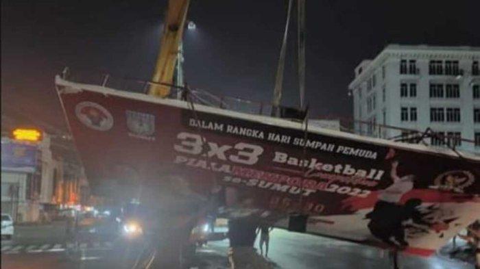 Pemko Medan menertibkan reklame bermasalah di Kota Medan, Sabtu (16/7/2022).
