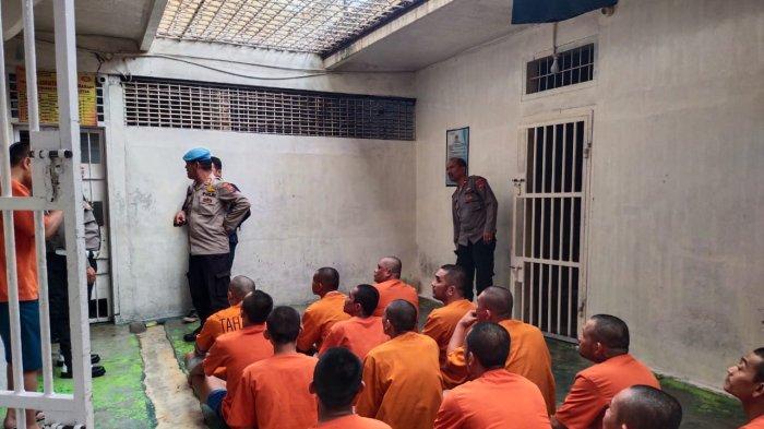 Wakapolres Pematangsiantar Kompol Hendrik Situmorang MM bersama jajaran saat mengecek kondisi ruang tahanan. Pemeriksaan dilakukan untuk memastikan
