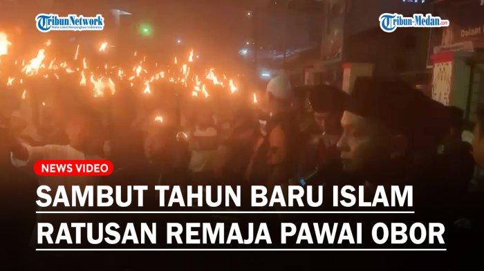 SAMBUT Tahun Baru Islam 1 Muharram 1445 Hijriah, Ratusan Remaja Pawai Obor di Siantar