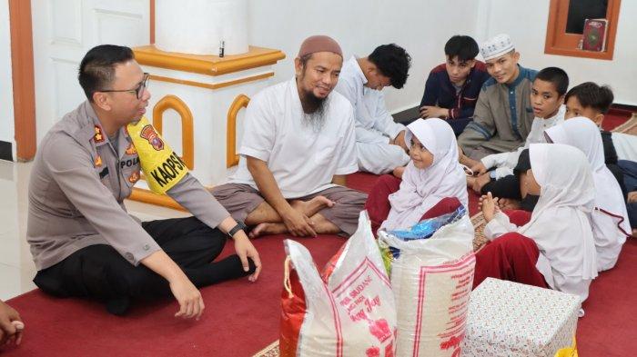 Kapolsek Batunadua AKP Andi Gustawi menghadiri Tausiyah dan Pemberian santunan anak yatim di Mesjid besar Baiturrahman jalan mawar, kelurahan ujung