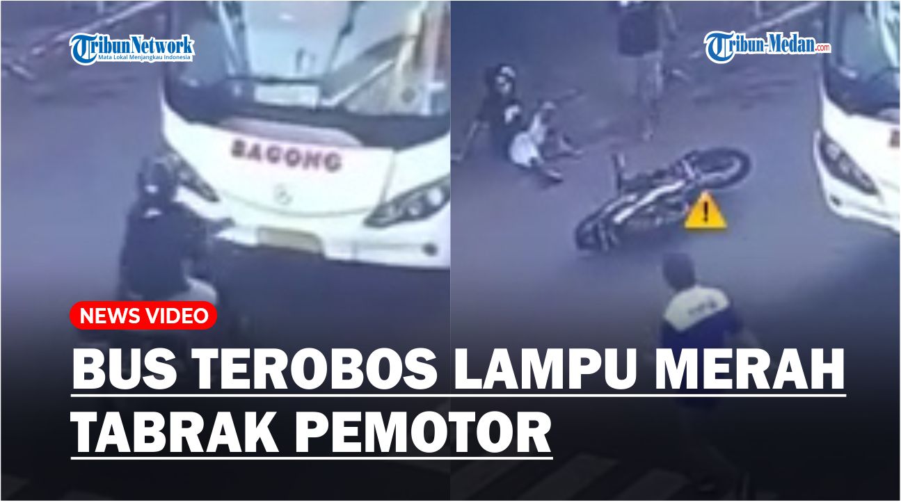 Detik-detik Bus Terobos Lampu Merah dan Tabrak Pemotor Hingga Terpelanting