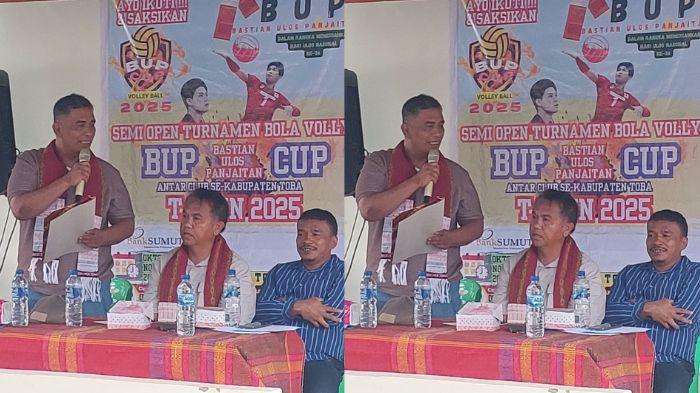 TRIBUN-MEDAN.com, TOBA - Dalam rangka memeriahkan Hari Ulos Nasional ke-11, Plh. Sekretaris Daerah Kabupaten Toba, Paber Napitupulu secara resmi membuka Turnamen Bola Voli Bastian Ulos Cup 2025 di Lapangan Olahraga Mess Bastian Ulos Panjaitan, Desa Pintu Batu, Kecamatan Silaen, pada Minggu (2/11).