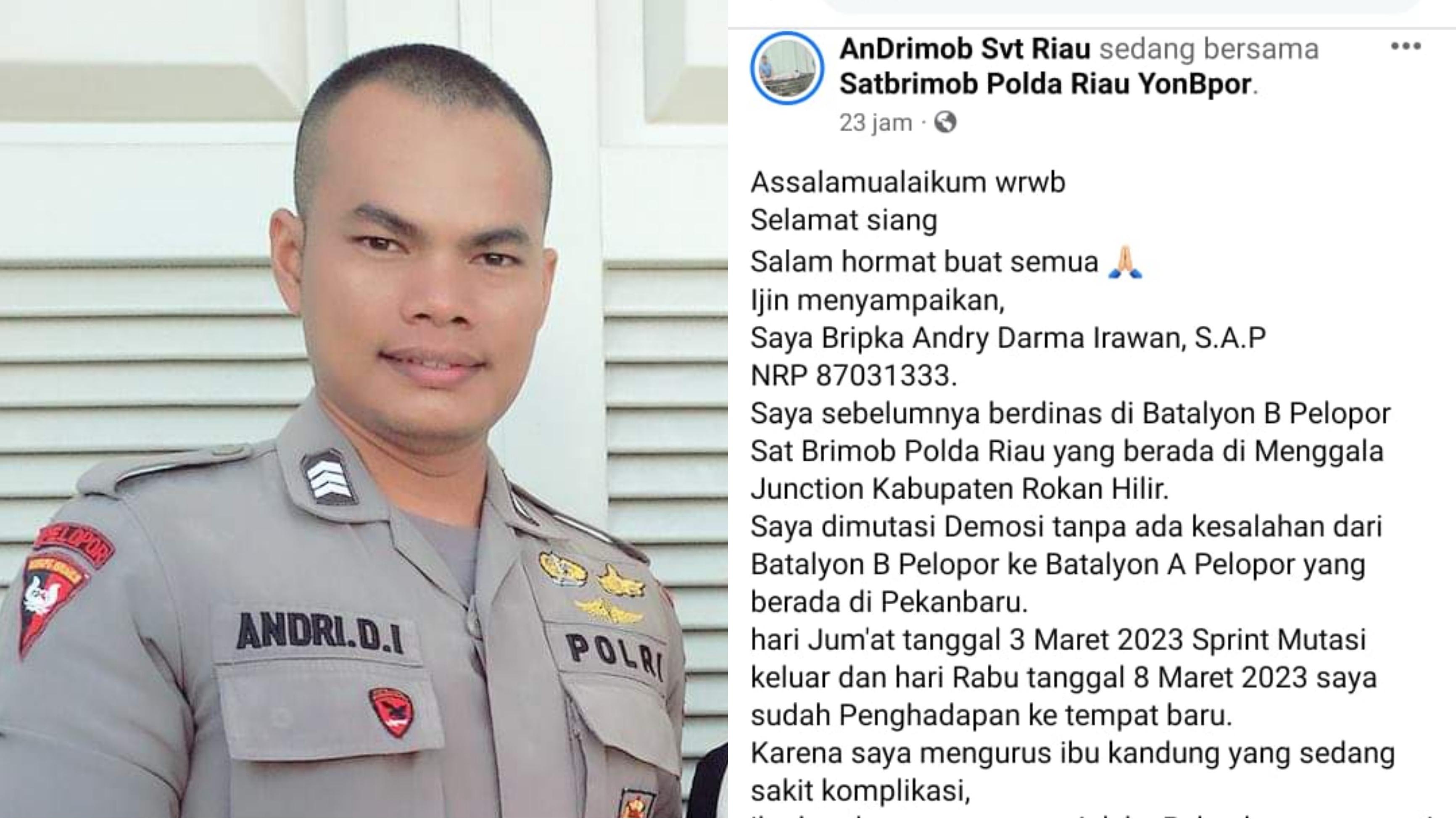 Viral di media sosial anggota Brimbo Polda Riau bernama Bripka Andry Darma Irawan bongkar kelakuan atasannya setelah dimutasi tanpa alasan yang jelas.