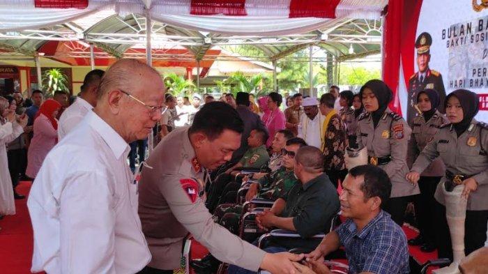 Polda Sumut membagikan 56 kursi roda dan 31 kaki palsu kepada personel Polisi dan TNI yang disabilitas.