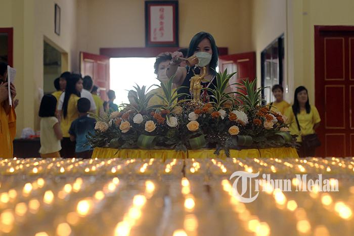 Perayaan Waisak di Kota Medan dilaksanakan dengan berbagai cara, termasuk memandikan Buddha kecil