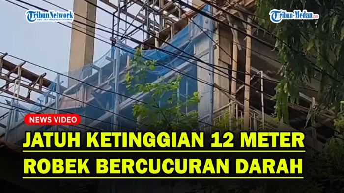 Pekerja bangunan indekos jatuh dari ketinggian 12 meter di Jalan Sampul, Medan, Sumatera Utara, Selasa (14/10/2025).